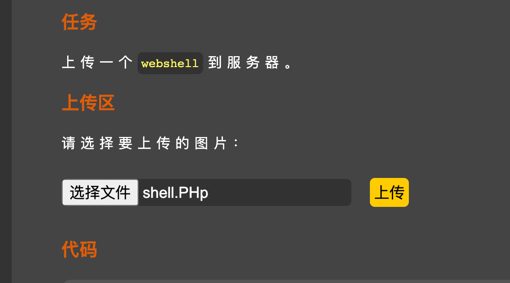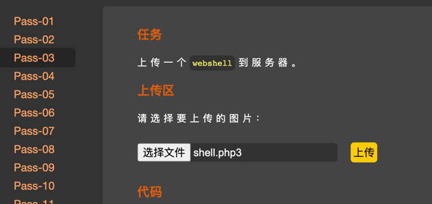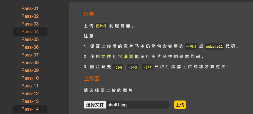 同上一关,但是在上一关的基础上,对文件名进行修改,需要配合文件包含漏洞或其他漏洞