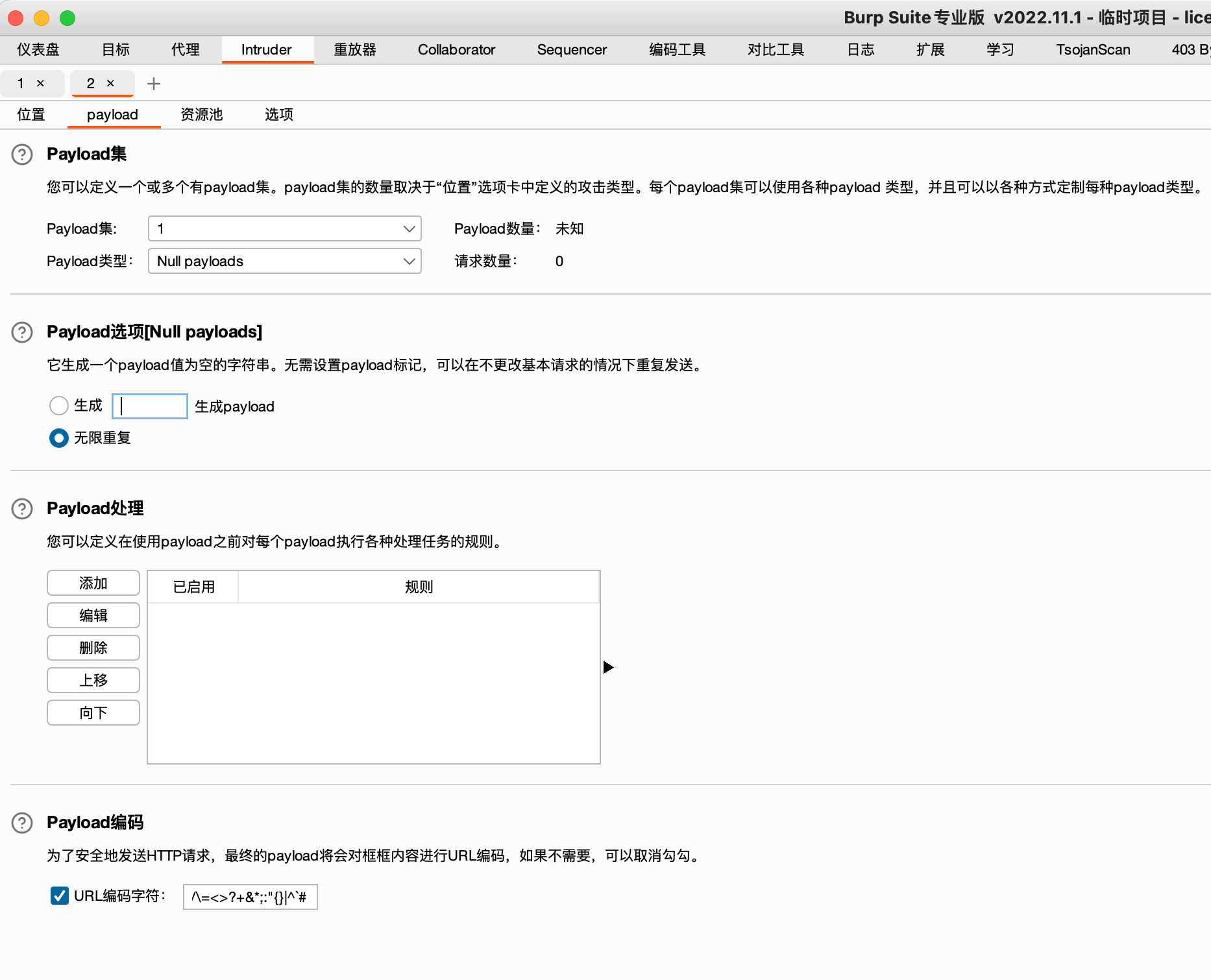 利用burp重复发包,不设置payload