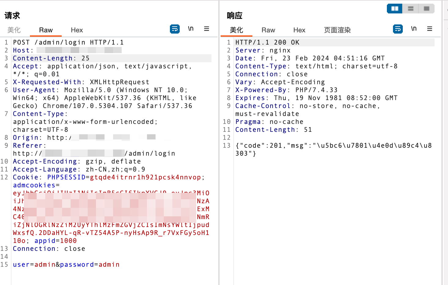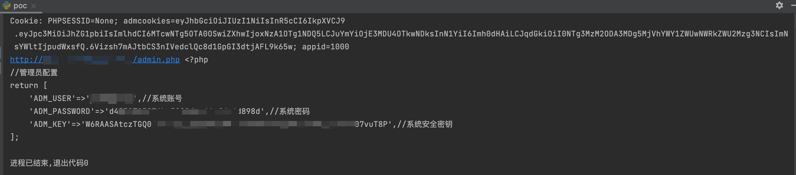 观察 Cookie 字段中 admcookies 为 jwt 加密,尝试解密