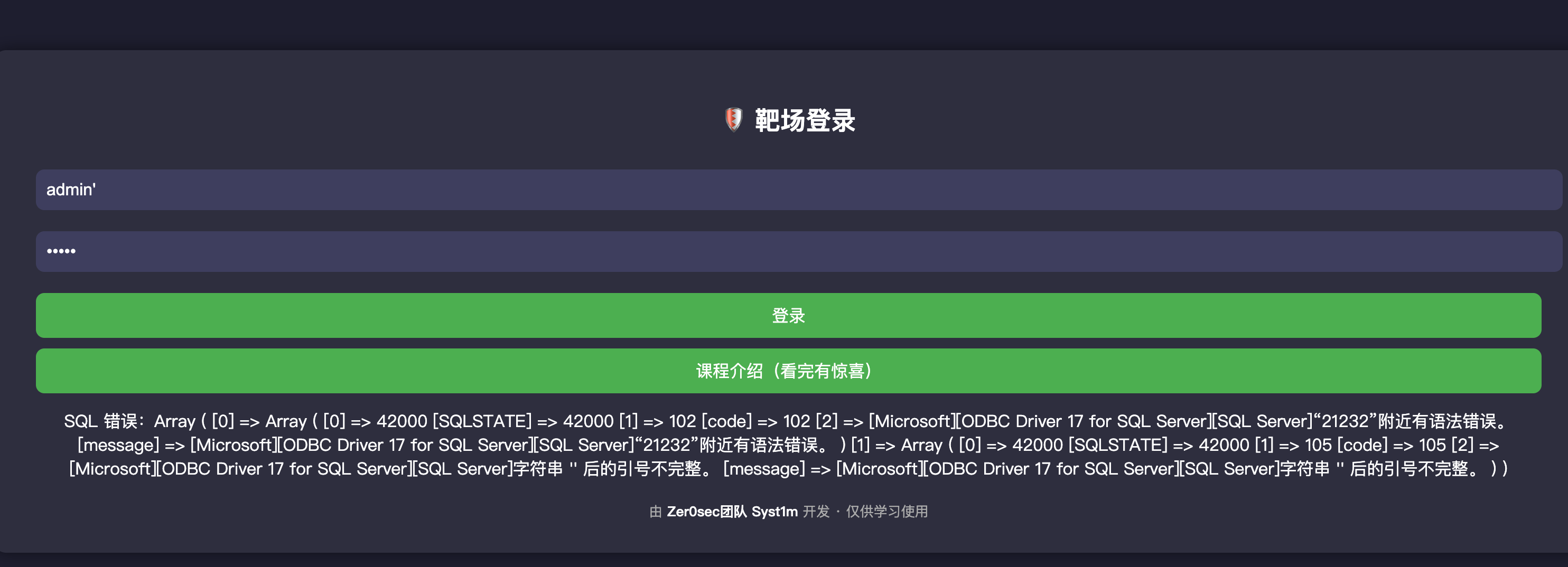 首先考虑这里是登录点,无非就是去数据库对应的表对比账户密码的值,这里用户名存在注入,说明直接将参数拼接在查询语句了。