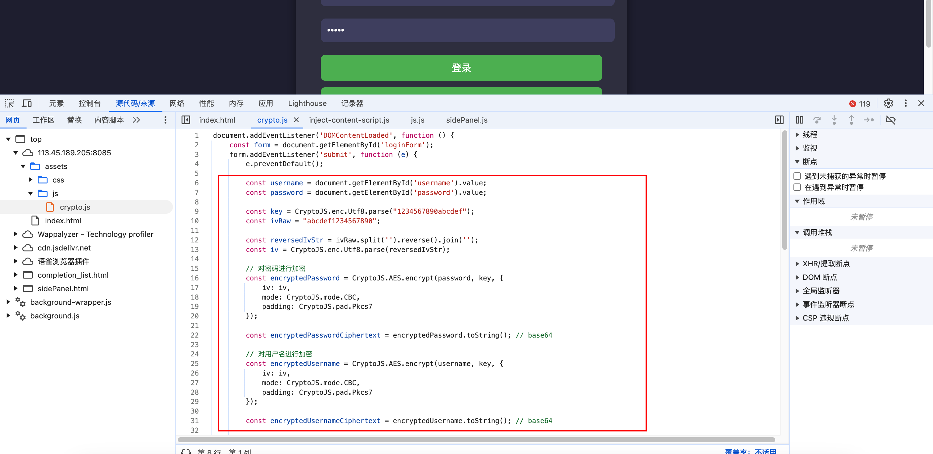 查看js,很基础的加解密