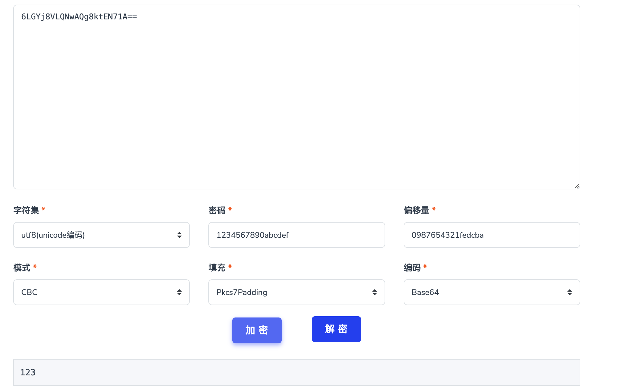 0987654321fedcba(反转字符串abcdef1234567890)。 - 选择加密模式:使用 CBC 模式。