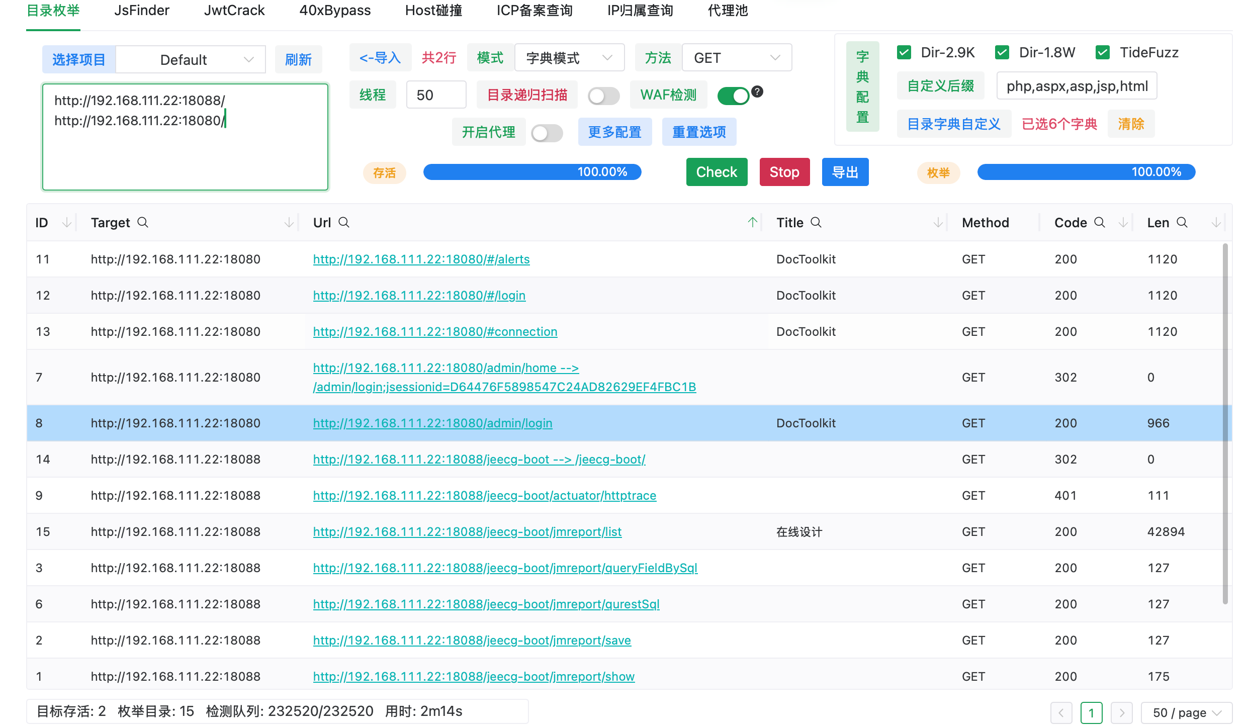 http://192.168.111.22:18088/ 访问 404 扫扫目录