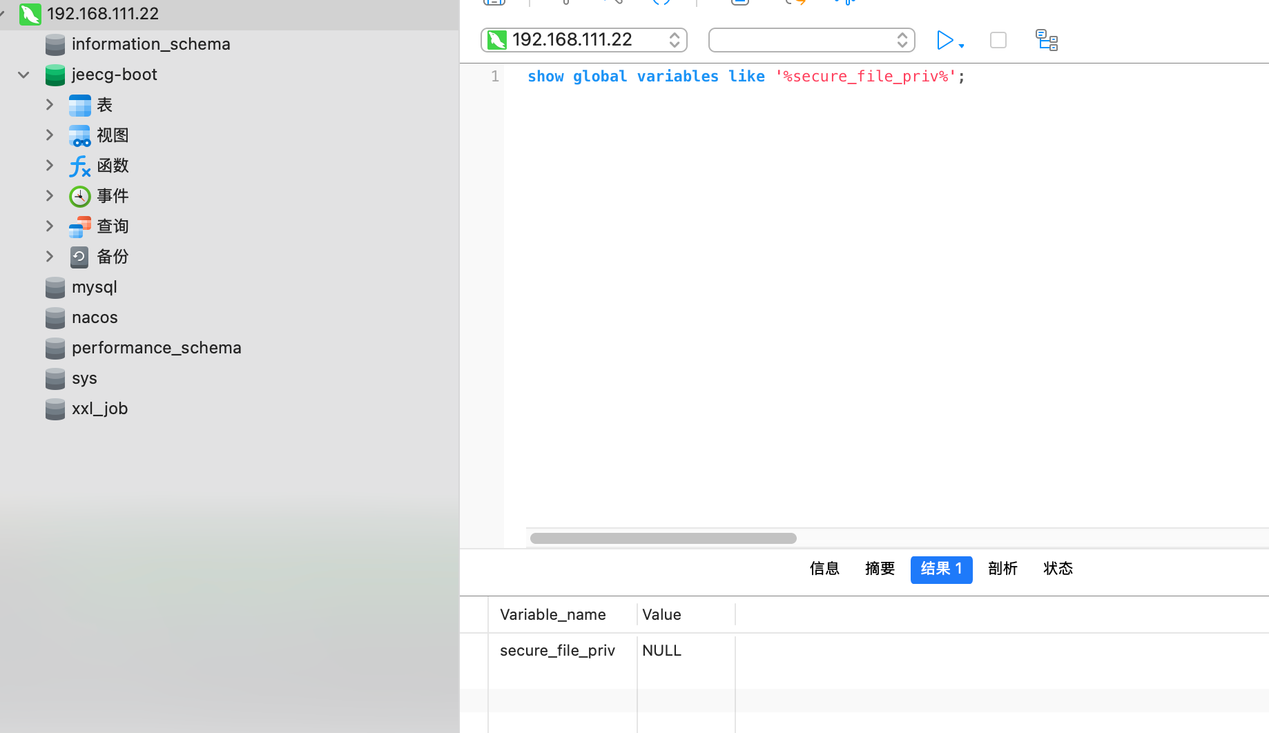 show global variables like '%secure_file_priv%';