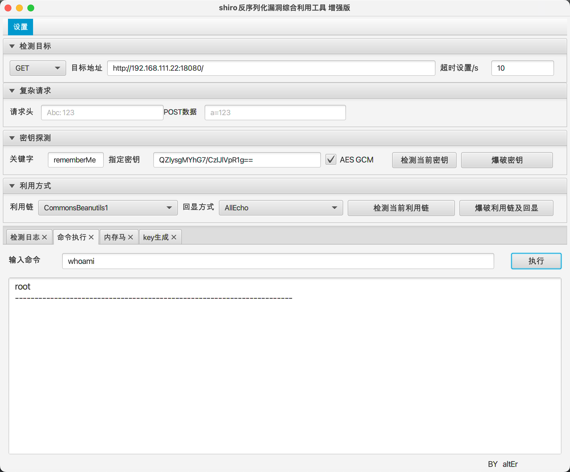 GitHub - SummerSec/ShiroAttack2: shiro反序列化漏洞综合利用,包含(回显执行命令/注入内存马)修复原版中NoCC的问题 https://github.com/j1anFen/shiro_attack