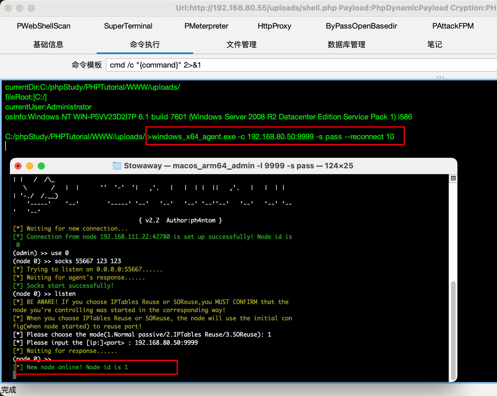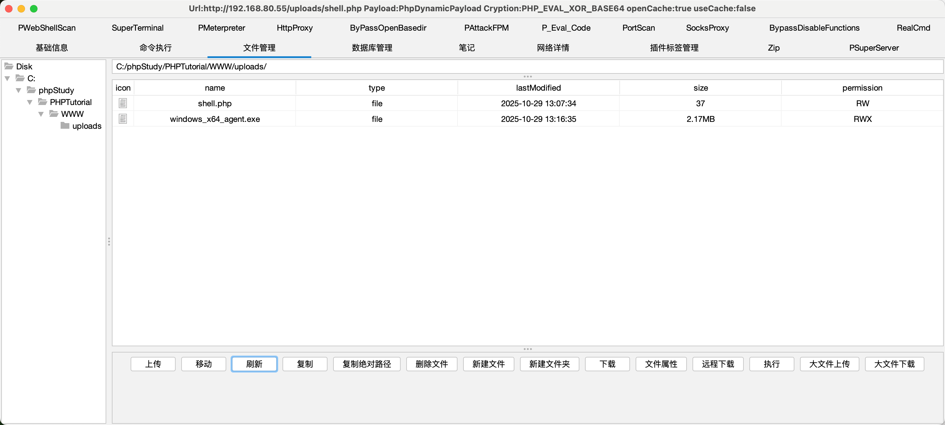 http://192.168.80.55/uploads/shell.php 密码 pass