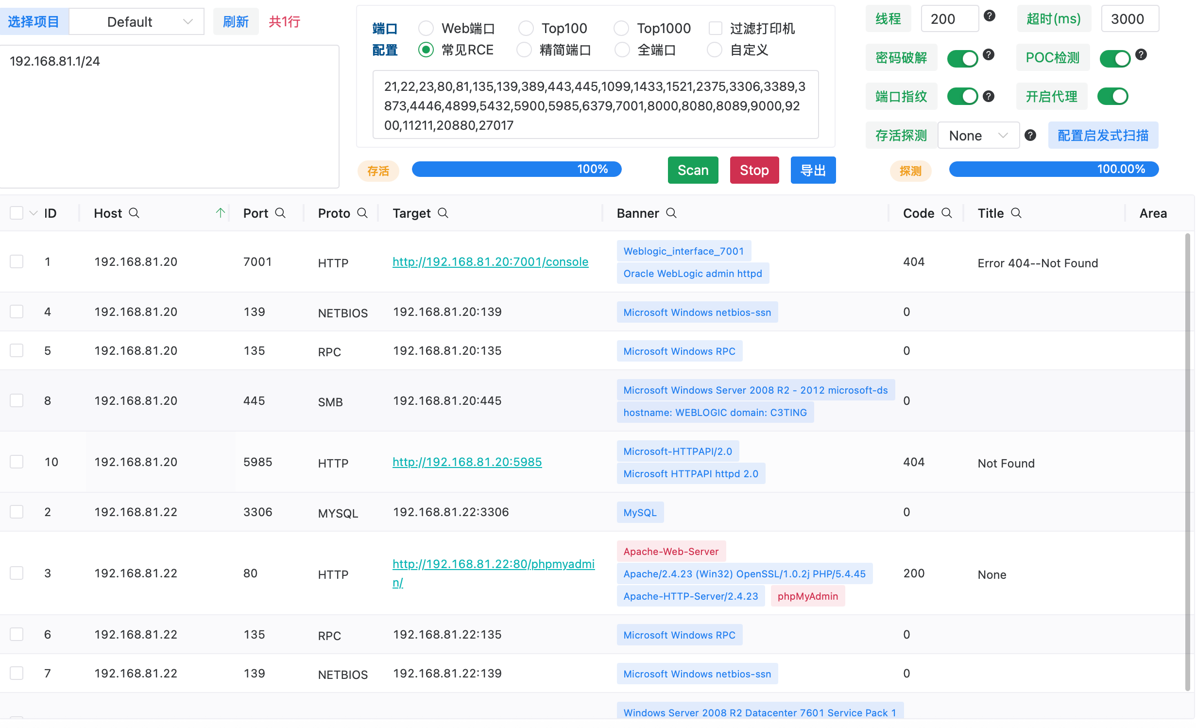 扫一下网段192.168.81.1/24