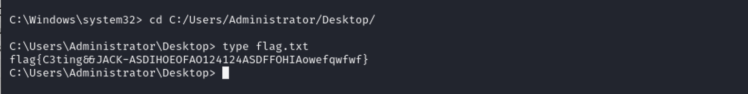 在桌面找到第二个 C:/Users/Administrator/Desktop/flag.txt
